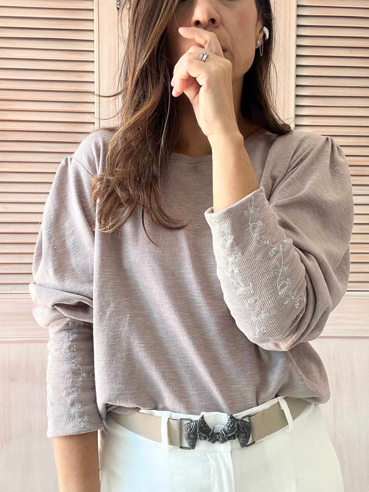 Camibuzo/ Manga larga  Bordado lentejuelas / cuello Redondo
