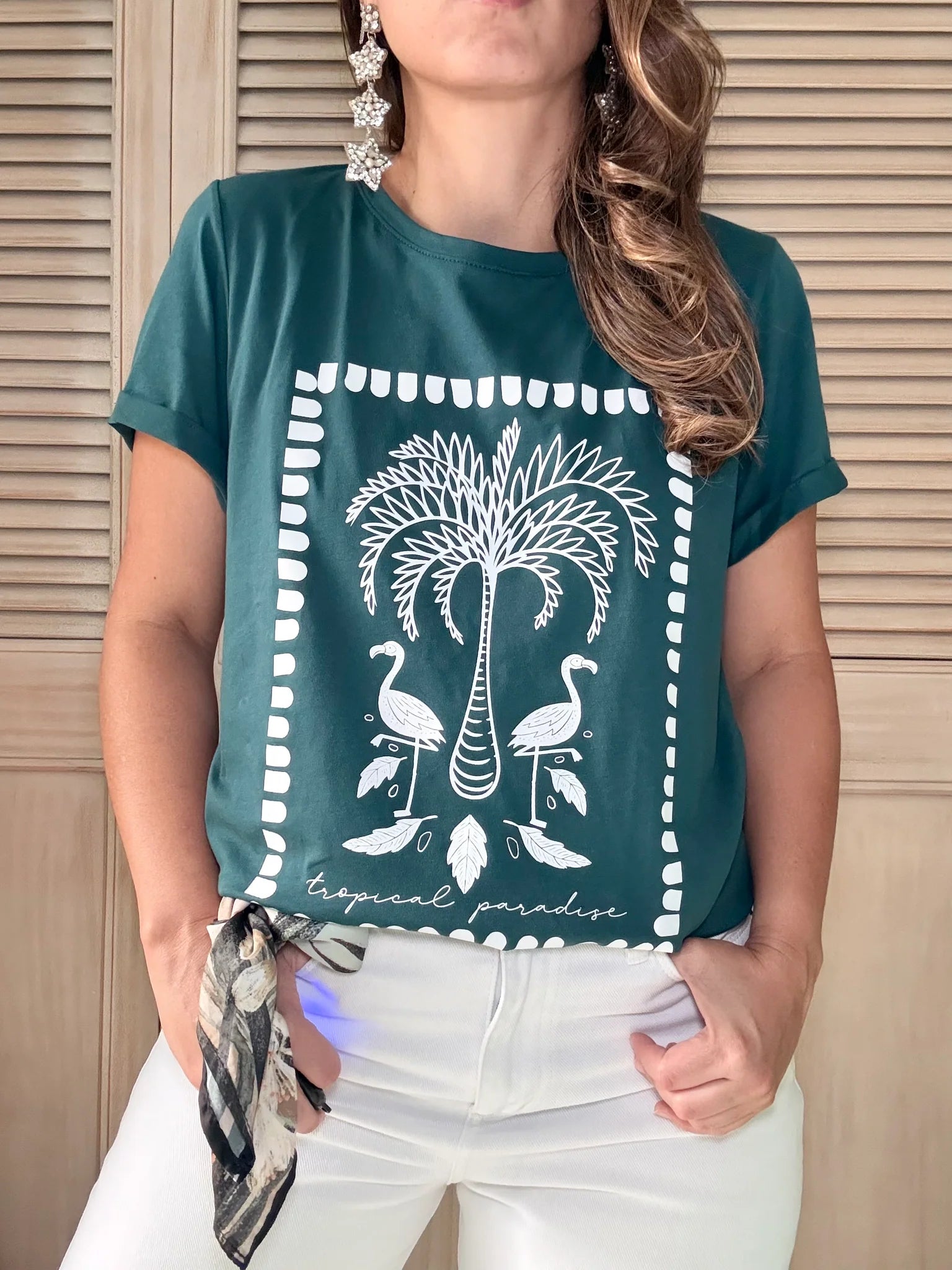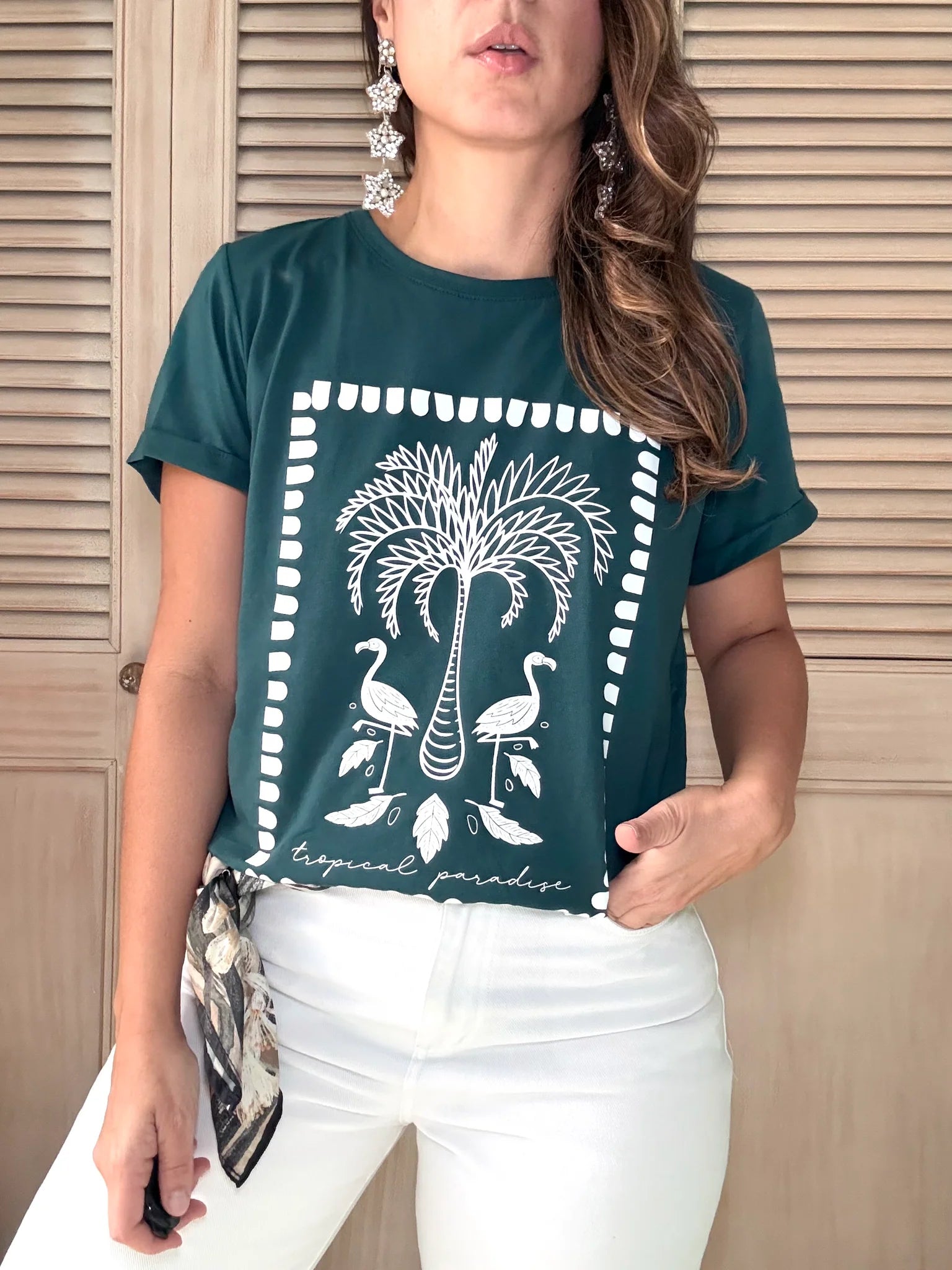 T- Shirt Básica / Cuello Redondo / Silueta Amplia / Manga corta /Palmera
