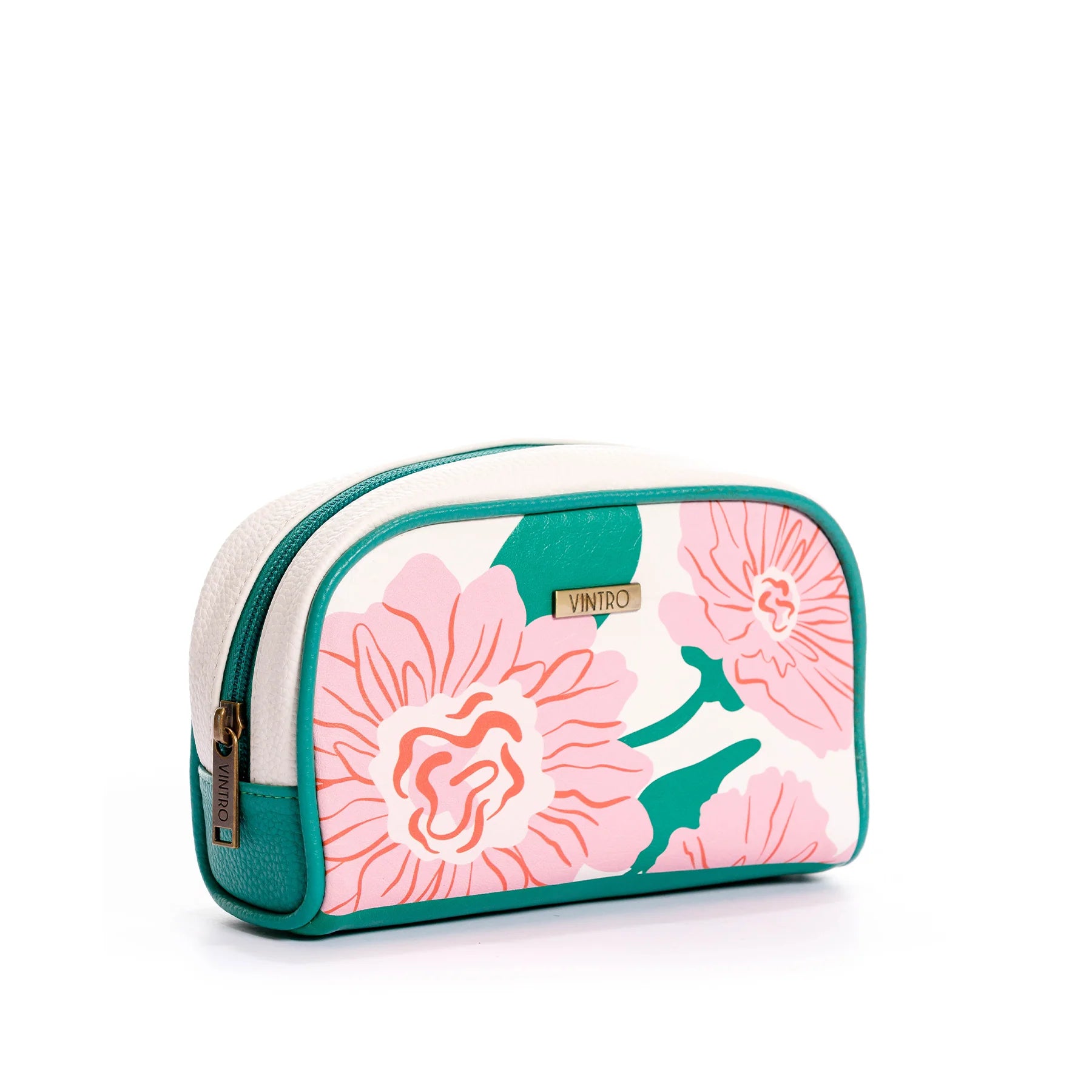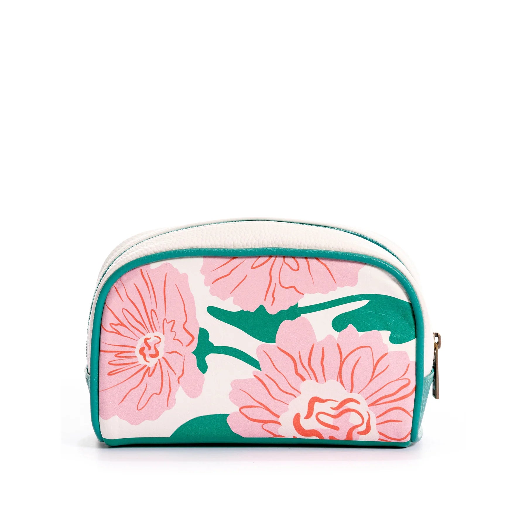 Nuestra cosmetiquera mediana Floral Masterpiece está inspirada en la delicadeza de las flores y pensada para mujeres que buscan un accesorio práctico sin perder la feminidad. Elaborada en PVC resistente y fácil de limpiar, combina un estampado de flores rosadas con un fuelle verde que le aporta frescura y estilo.