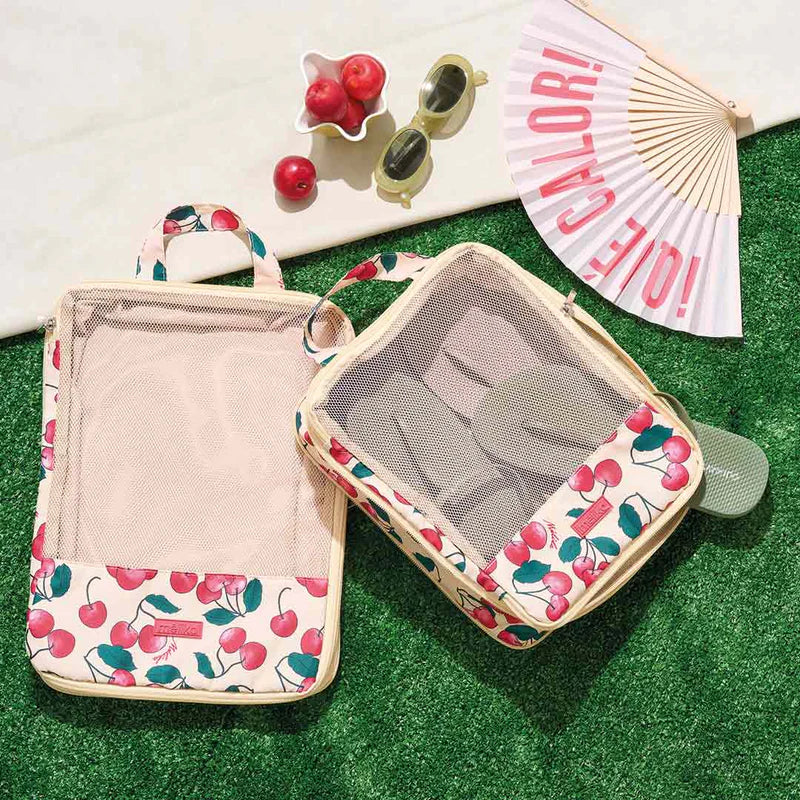 Kit x2 bolsas organizadoras con compresión y acolchado. Perfectas para empacar para tus viajes o la ropa en tu closet, pues por su sistema te permiten guardar más artículos sin ocupar demasiado espacio. Ideales para guardar ropa, ropa interior, accesorios y zapatos. Cuentan con bolsillo en malla para poder visualizar los productos que se encuentran en el interior. Medidas: Grande: 38 cm de largo x 28 cm de ancho x 10 de cm alto (Sin compresión) / 2 cm de alto (Con compresión) Pequeña: 30 cm de largo x 23 cm de ancho x 9 cm alto (Sin compresión) / 2 cm de alto (Con compresión) Materiales: Lona sublimada, malla y forro interno en poliéster 100%.