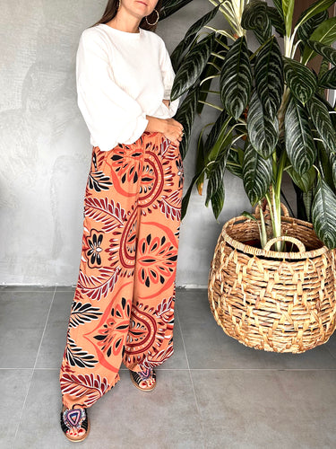 PANTALÓN NEGRO-CAMEL ESTAMPADO