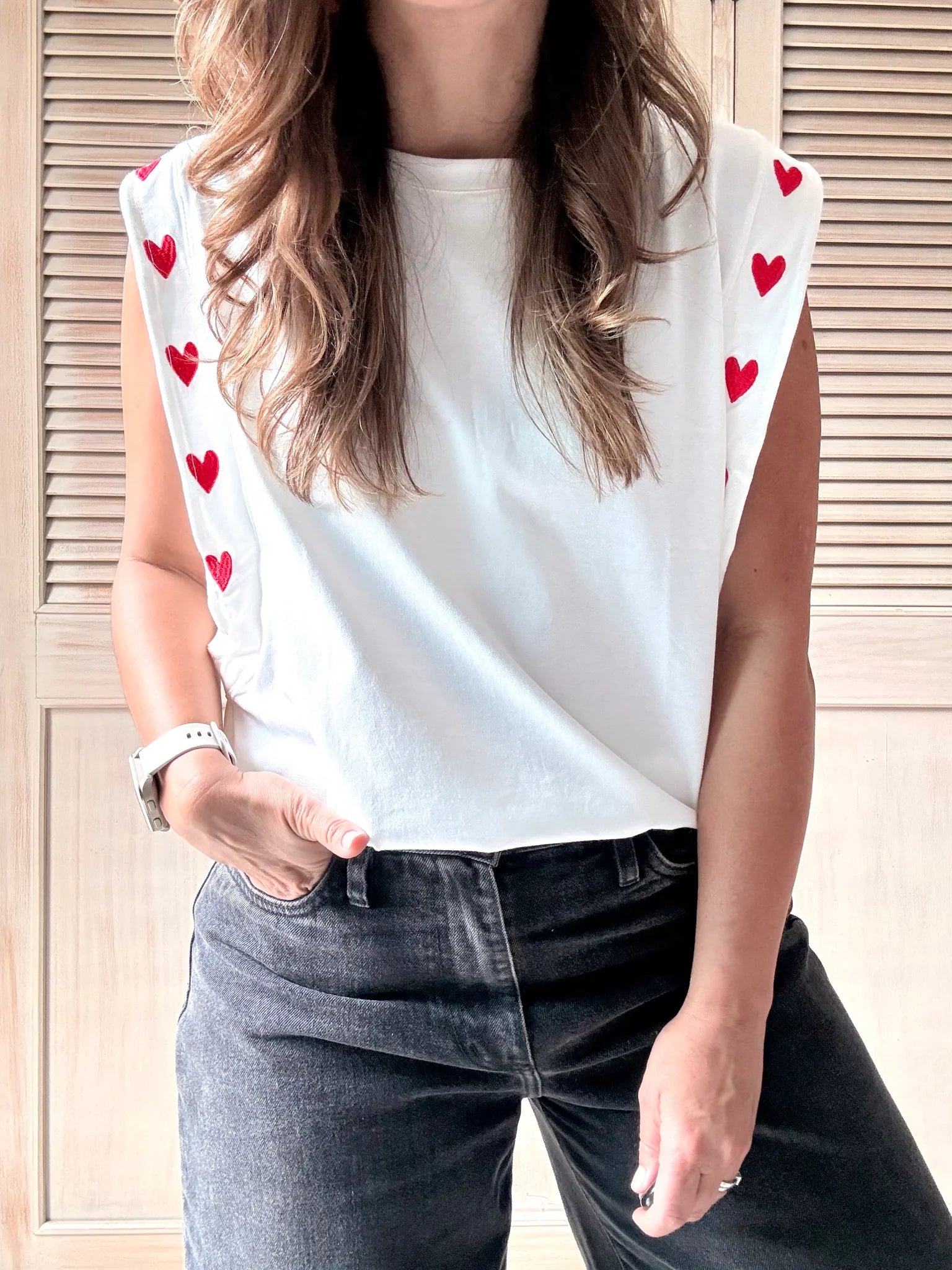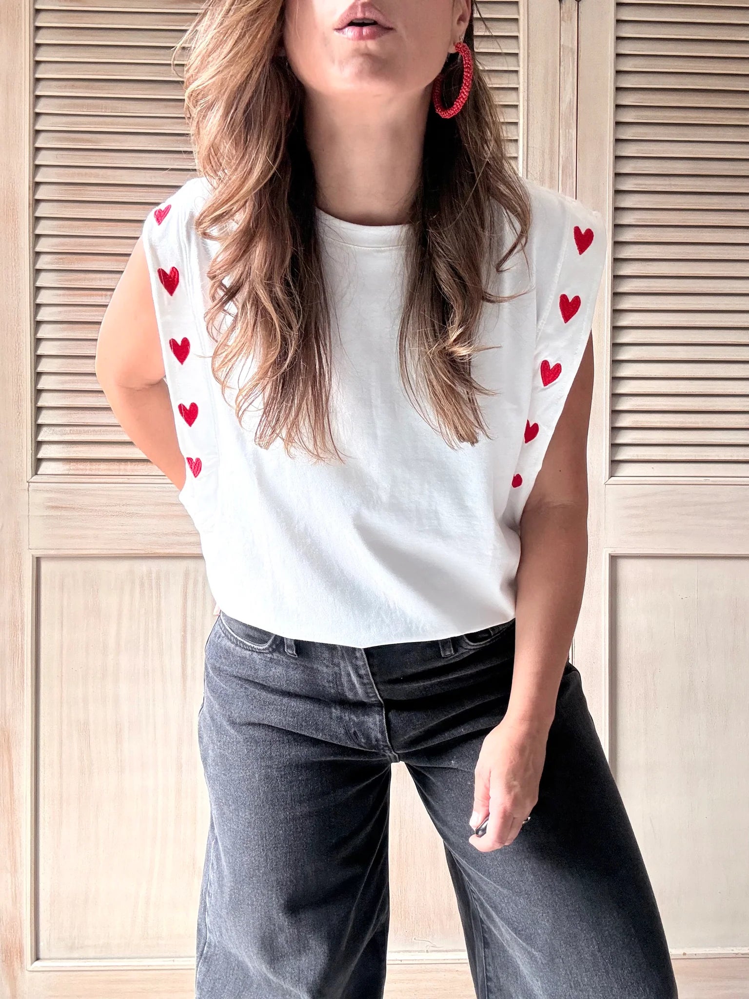 Básica/Cuello Redondo/ Manga Corta / Bordado Corazones