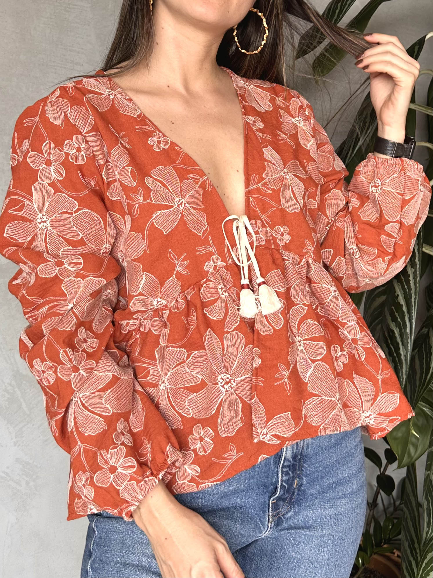 CAMISA LINO BORDADO CON TIRAS PARA AMARRE – Primavera Tienda