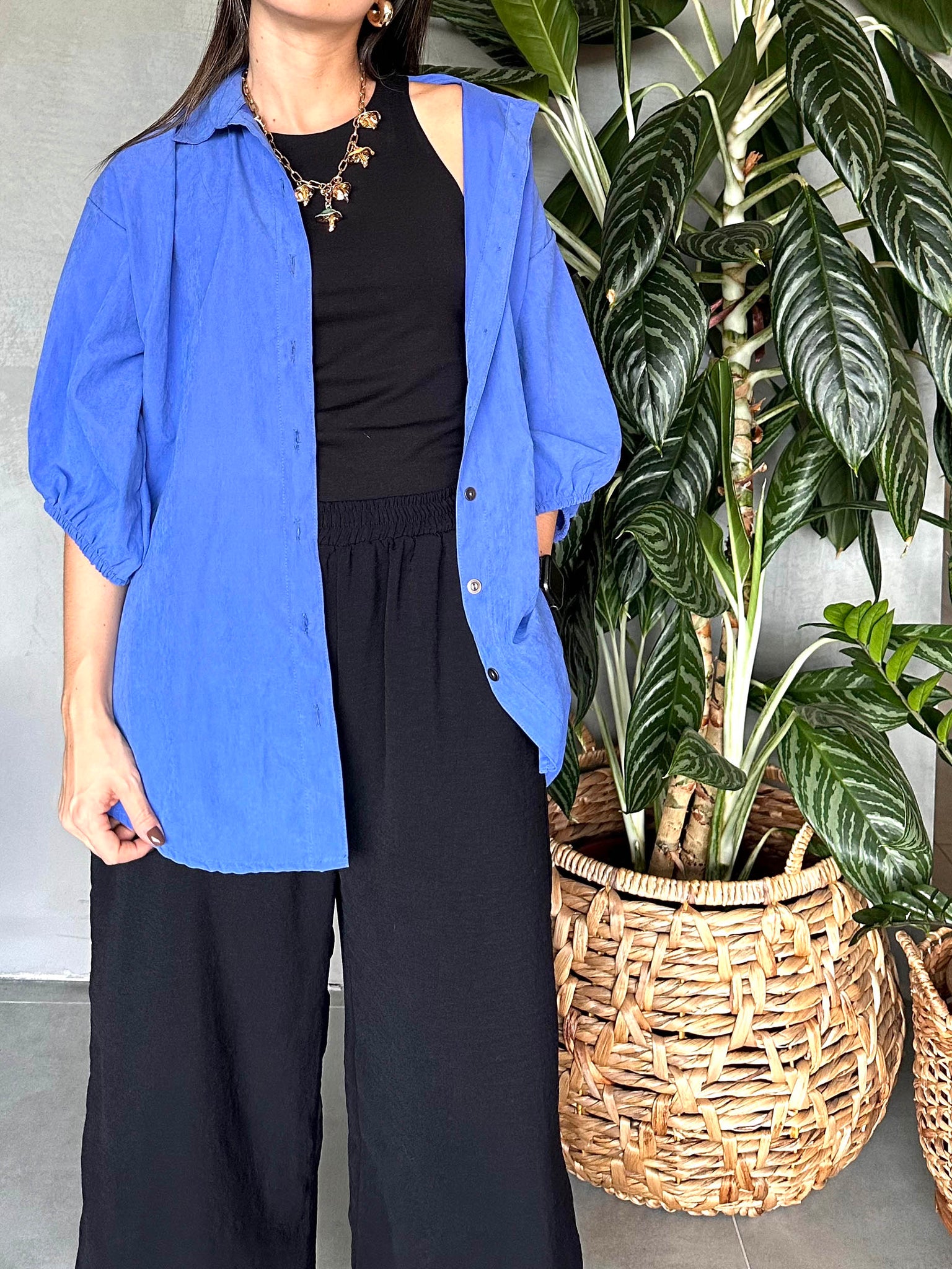 CAMISA OVERSIZED CUELLO Y BOTONES AZUL ELECTRICO