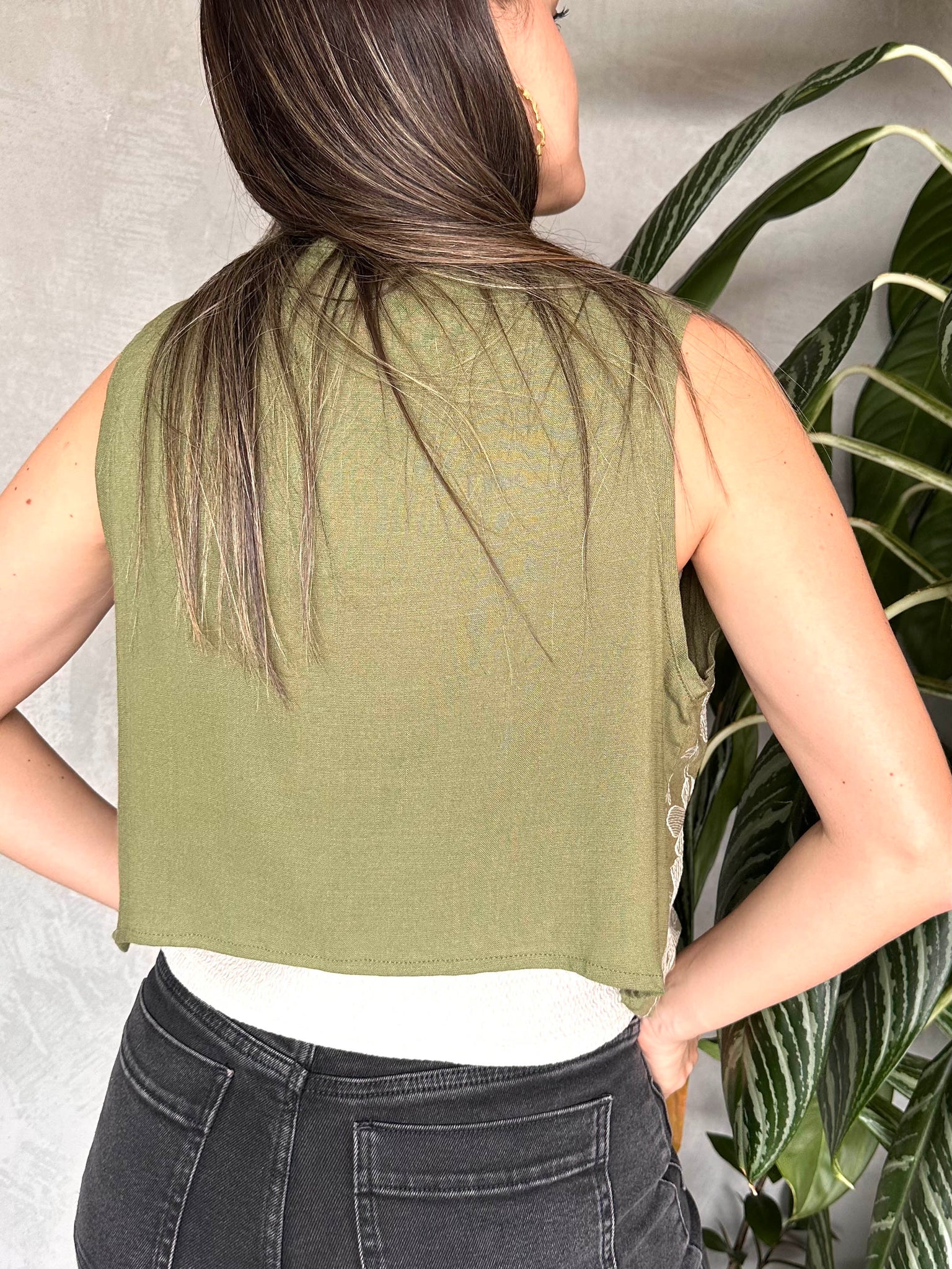 • Cargar imagen en el visor de la galería, CHALECO LINO BORDADO